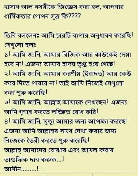 “যারা বলে, হে আমাদের রব! আমাদের স্ত্রীদের পক্ষ থেকে এবং আমাদের সন্তানদের পক্ষ থেকে আমাদের জন্যে চোখের শীতলতা দান কর এবং আমাদেরকে মুত্তাকীদের জন্য আদর্শস্বরূপ কর”। [সূরা আল-ফুরকান, আয়াত: ৭৪]