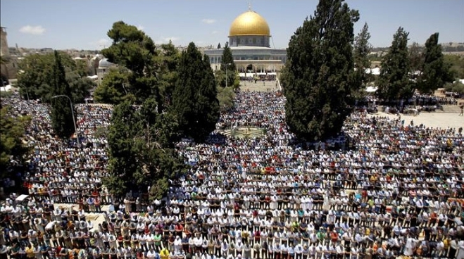 ইসরাইলি বাধা উপেক্ষা করে জেরুজালেমে অবস্থিত পবিত্র মসজিদ আল আকসায় এক লাখ ৪০ হাজার মুসল্লি একসঙ্গে তারাবির নামাজ আদায় করেছেন।